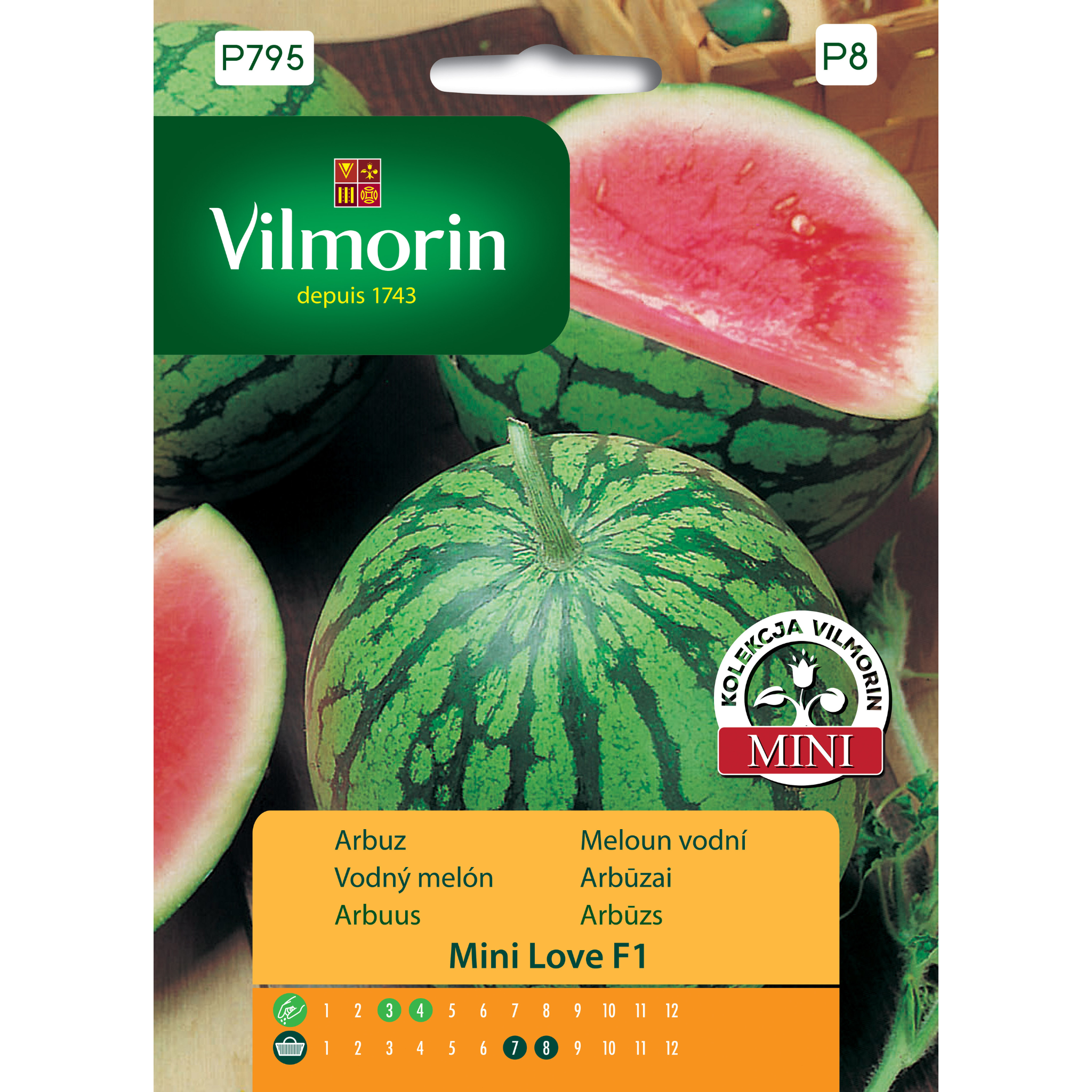 Arbuz Mini Love F1 to odmiana wczesna, która cechuje się bardzo dobrym smakiem oraz małą ilością nasion. Owoce rosną wielkości dużego melona. Arbuza należy uprawiać pod osłonami lub w dobrze nasłonecznionym gruncie. Nasiona należy wysiewać od marca do kwietnia, zbiorów zaś dokonywać od lipca do sierpnia. Idealnie nada się do spożycia na surowo oraz jako dodatek do deserów.