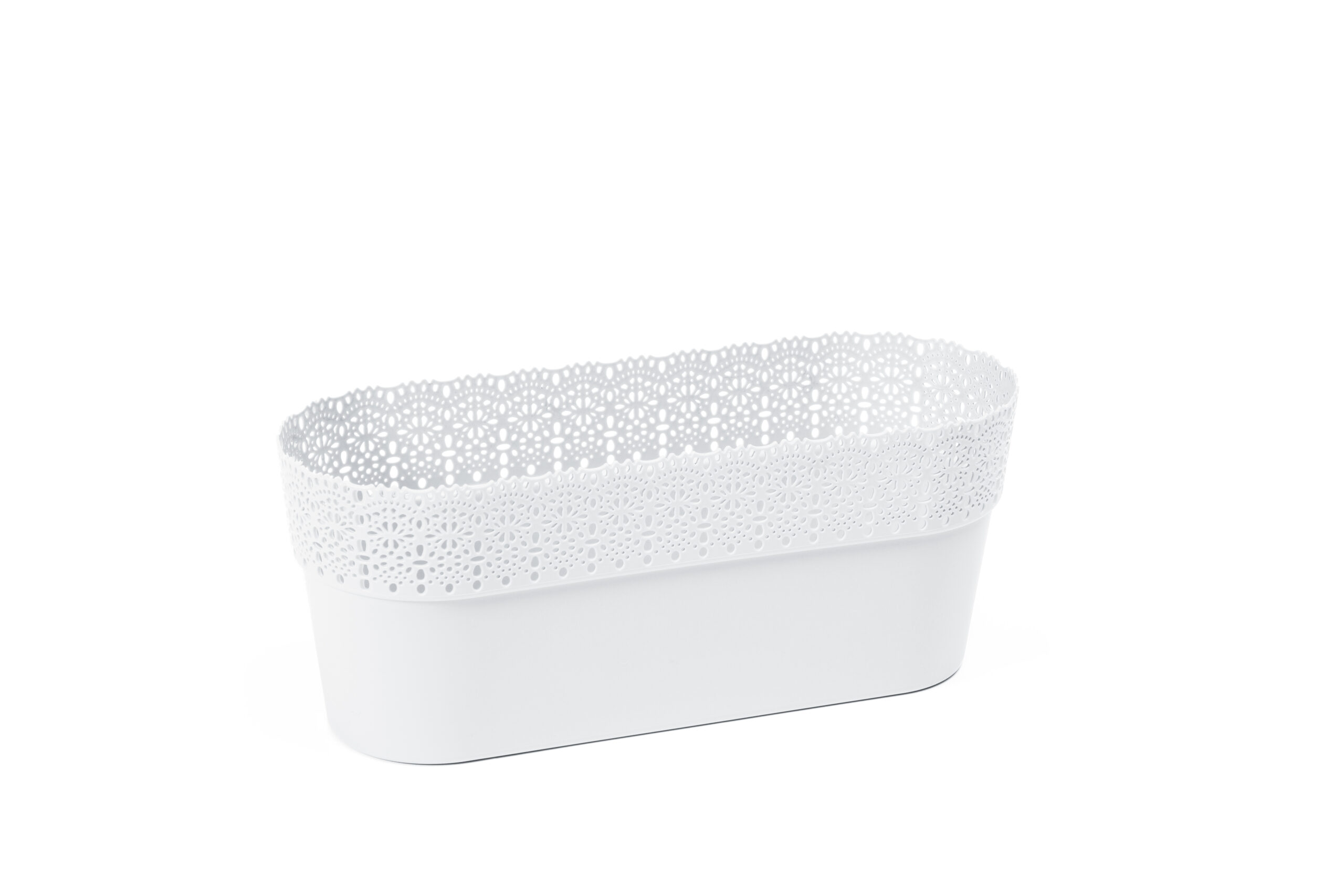 Donica owalna Bella firmy Lamela to produkt o delikatnym wyglądzie z koronkowym kołnierzem. Wpasuje się idealnie do wielu wnętrz. Ta osłonka daje delikatny efekt, kobiecy i nadaje się również do przechowywania drobiazgów, dzięki swojemu eleganckiemu wyglądowi.