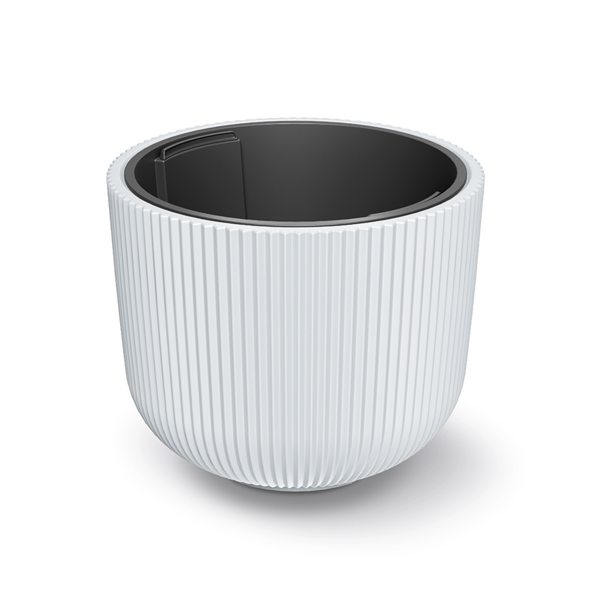 Doniczka Milly firmy Prosperplast to produkt o nowoczesnym wyglądzie w pionowe żłobienia. Donica posiada czarny wkład w komplecie.