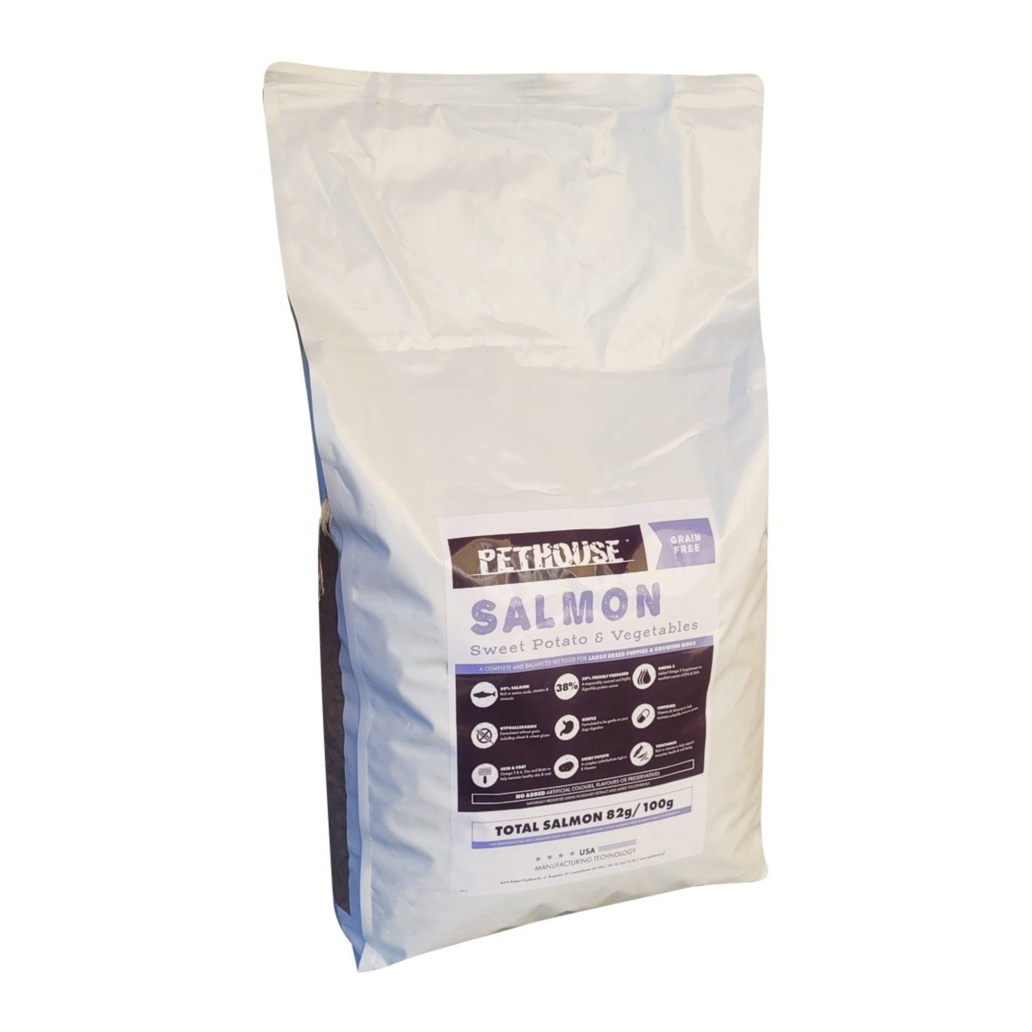 60% łososia, (38% świeżo przygotowanego łososia, 20% suszonego łososia, bataty (19%), ziemniaki, pulpa buraczana, siemię lniane, witaminy, marchew, groszek (0,2%), suplement omega-3, bulion warzywny, glukozamina (355 mg / kg), metylosulfonylometan (355 mg / kg), siarczan chondroityny (250 mg / kg), nukleotydy, FOS (96 mg / kg), MOS (24 mg / kg).