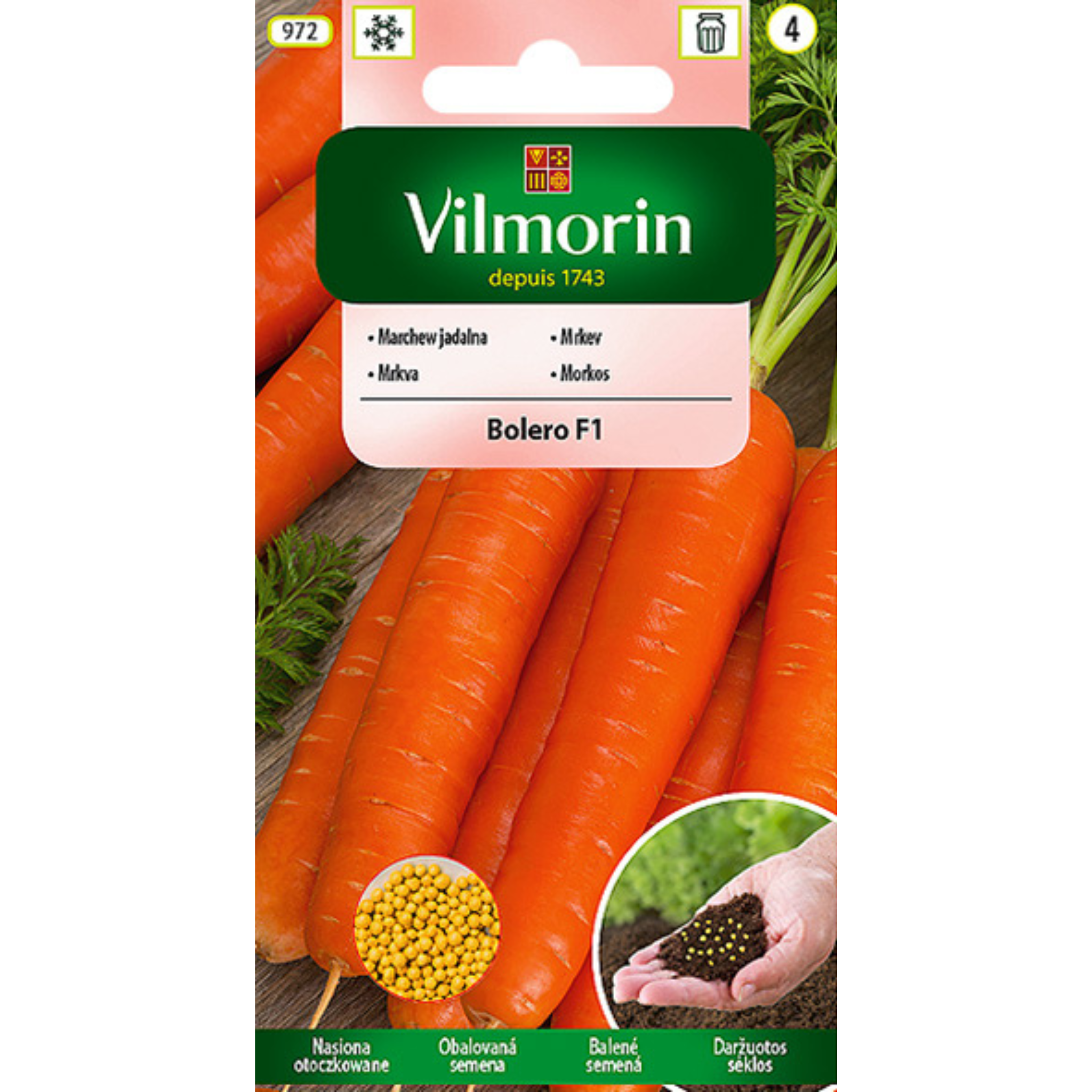 Marchew Bolero to odmiana wczesna, bardzo plenna. Warzywa są bardzo słodkie i smaczne, idealnie nadają się do robienia soków i spożycia na surowo. Korzenie mają długość 18-22 cm, są gładkie i intensywnie pomarańczowe. Marchew jest odporna na czernienie i kumulowanie azotanów i metali ciężkich. Okres wegetacji roślin wynosi 110 dni. Nasiona należy wysiewać do gruntu od kwietnia do maja. Zbiorów można dokonywać w lipcu i październiku.