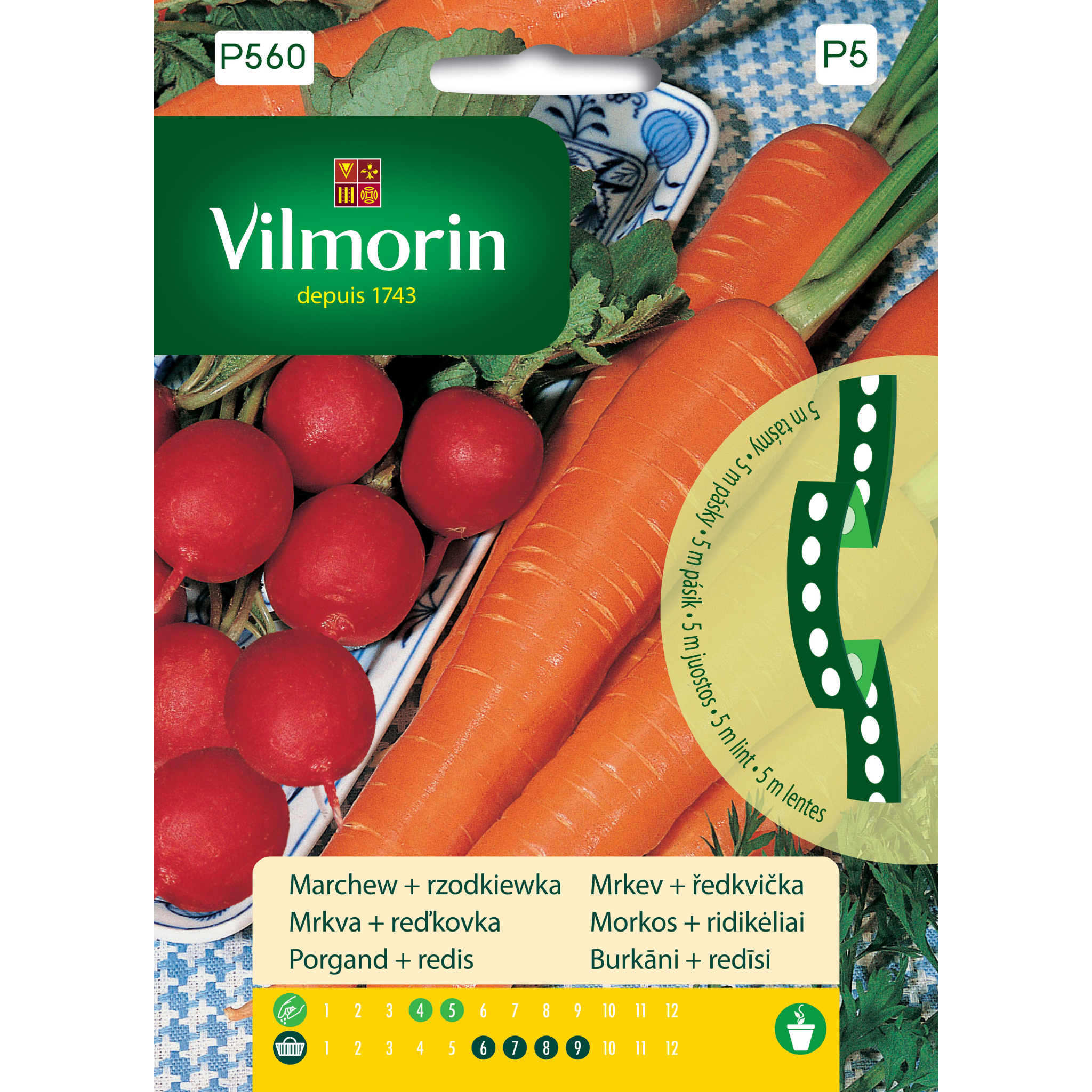 Marchew plus rzodkiewka na taśmie to bardzo wygodne rozwiązanie dla osób, które chcą wysiać te warzywa szybko i w równych odstępach. Nasiona umieszczone są na jednej taśmie. Najpierw przeprowadza się zbiór rzodkiewki, a następnie marchewki. Taśmy do gruntu należy wykładać w kwietniu i maju, pilnując ich nawilżenia. Niewolno doprowadzić do przesuszenia taśm. W opakowaniu znajduje się taśma o długości 5 metrów.