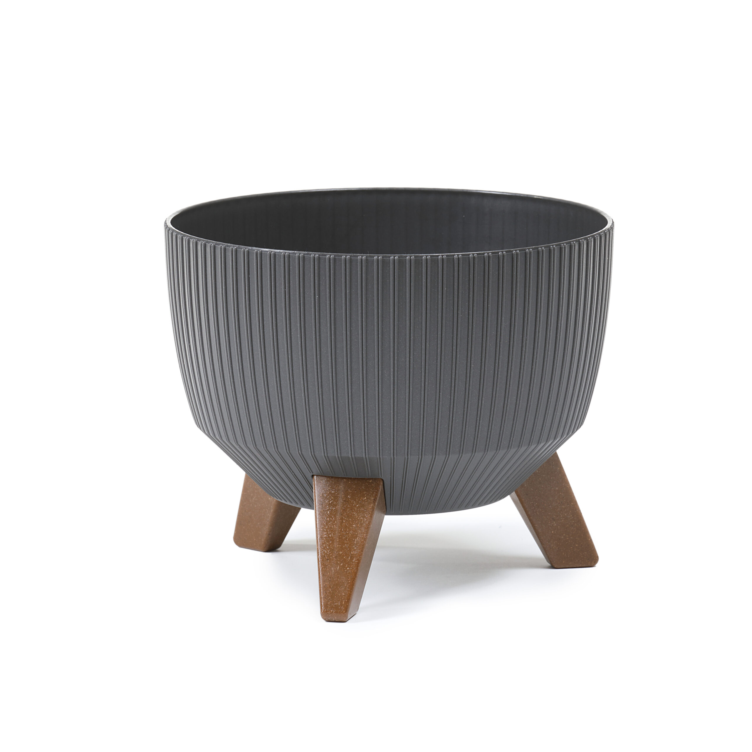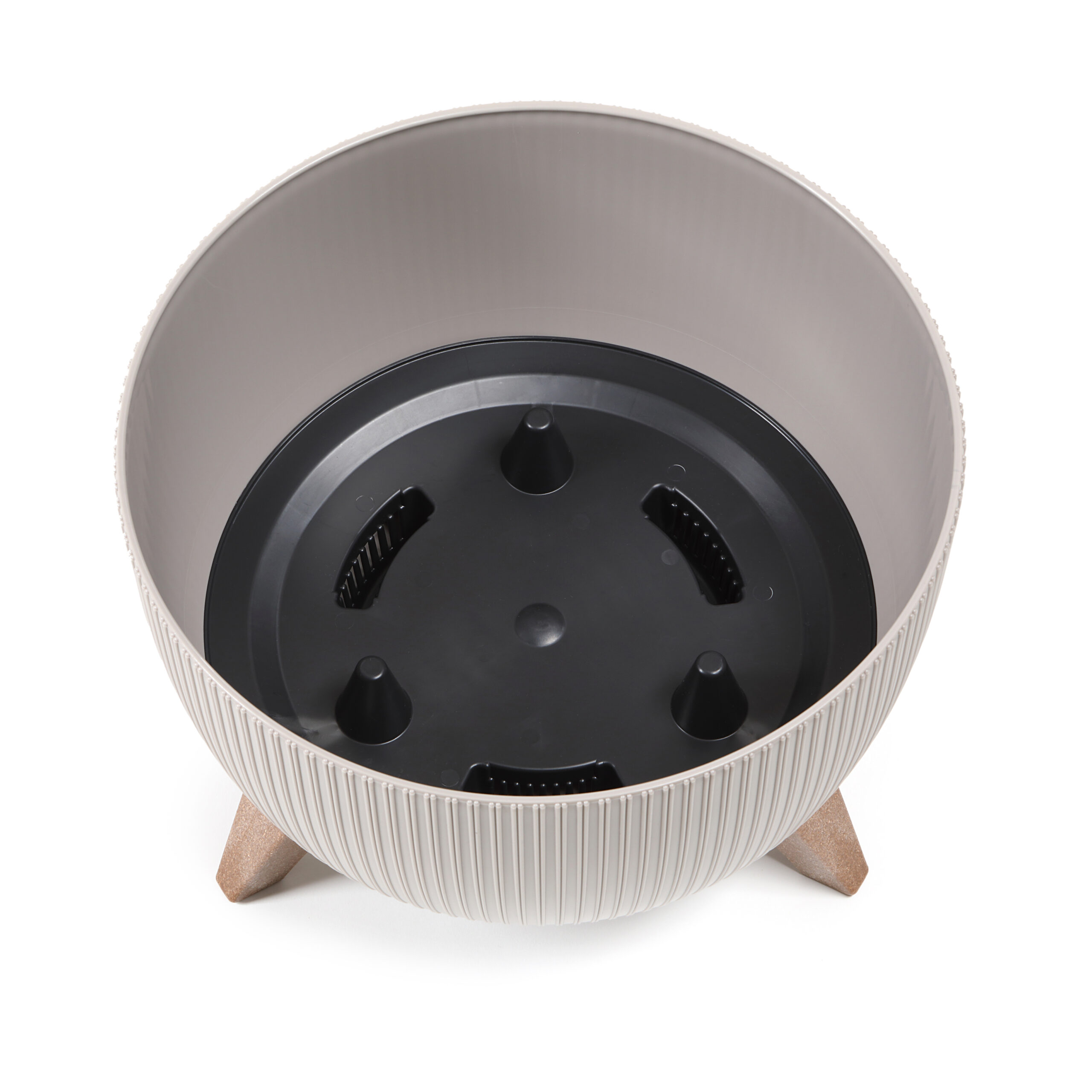 Misa Roma jumper firmy Lamela to kultowy produkt w pionowe prążki, pasujący zarówno do wnętrz, jak i kompozycji na zewnątrz. Wykonana z bardzo solidnego, odpornego tworzywa sztucznego. Misa osadzona jest na brązowych, plastikowych nóżkach oraz posiada wkładkę odprowadzającą wodę, działającą jak podstawek. Odprowadza ona nadmiar wody, którą następnie można wylać, wyciągając specjalny, gumowy korek.