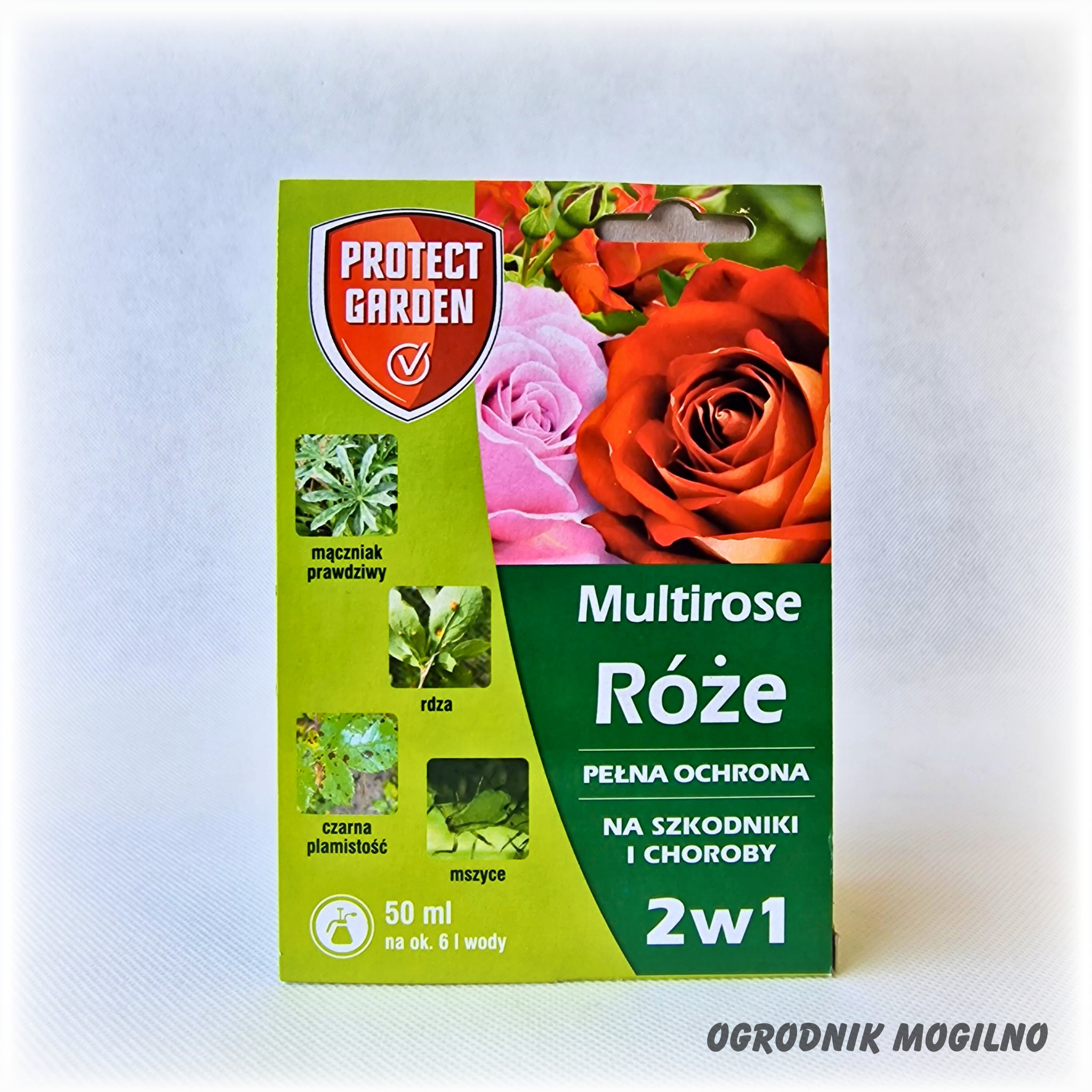 | Róże | Mszyce, mączniak prawdziwy, rdza róży, czarna plamistość | 12 ml na 1 l wody |