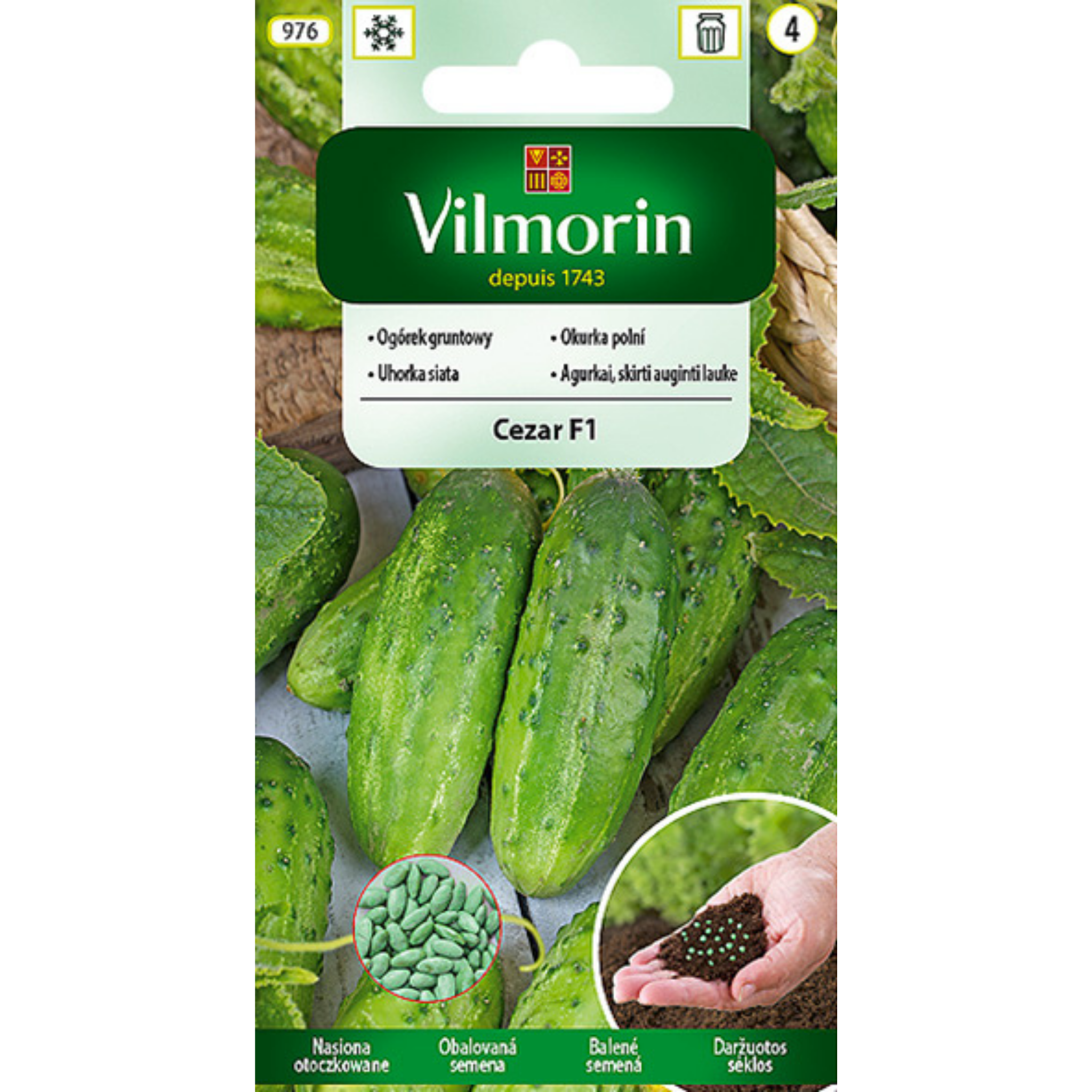 Ogórek konserwowy Cezar F1 to odmiana średnio wczesna, plenna oraz odporna na choroby. Owoce są barwy ciemnozielonej z jasnym marmurkiem, mają grube brodawki, a ich kształt jest smukły i wyrównany. Nasiona należy wysiewać w maju w rzędy co 80-90 cm na glebach słabszych, a na żyznych co 110-120 cm. Siać pojedynczo lub gniazdowo po 2-3 nasiona co 15 cm. Ogórek do wzrostu wymaga gleby silnie nawożonej, zasobnej w wodę, przepuszczalnej i ciepłej.