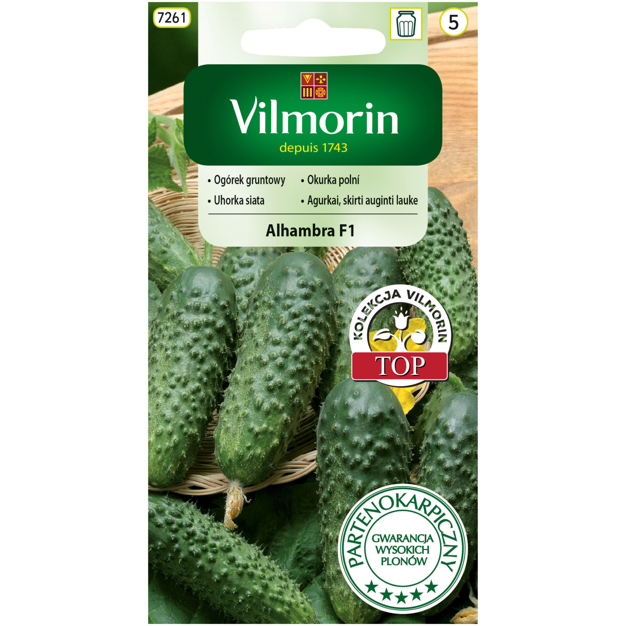 Ogórek Alhambra F1 to odmiana wczesna, partenokarpiczna, nadająca się do uprawy pod osłonami jak i w gruncie. Owoce są ciemnozielone, walcowate, z dużymi brodawkami. Rośliny są bardzo plenne. Taśmy z nasionami należy wykładać do ziemi w połowie kwietnia lub w maju w rzędy co ok. 80 cm. Ogórek nada się idealnie do spożycia na świeżo oraz do konserwowania i kiszenia.