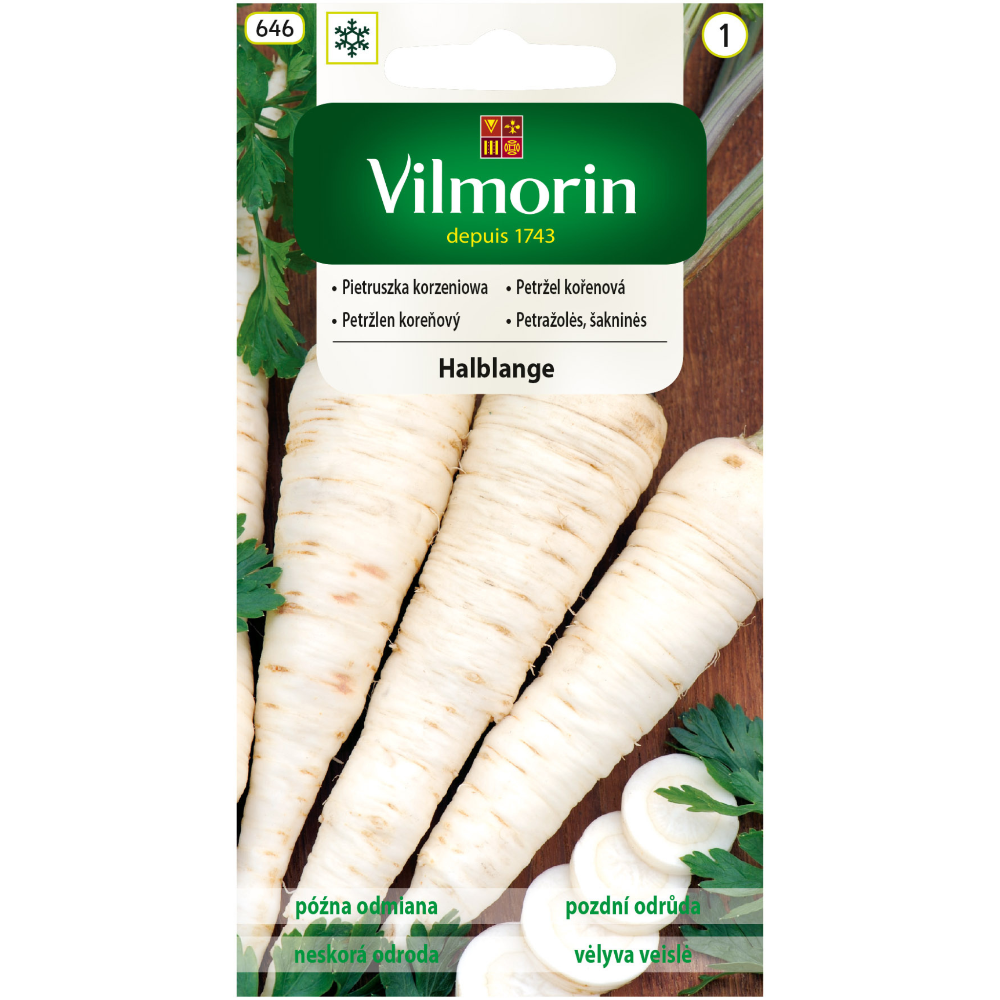 Pietruszka korzeniowa Halblange to odmiana średnio wczesna w typie Berlińskim. Korzenie są stożkowate, średniej długości o gładkiej skórce i białym, jędrnym miąższu. Nadaje się idealnie do bezpośredniego spożycia oraz długiego przechowywania. Nasiona należy wysiewać w rzędy co 30-40 cm. Można stosować siew ozimy (listopad, grudzień). Do rozwoju wymaga gleby dostatecznie wilgotnej, żyznej i zasobnej w próchnicę.