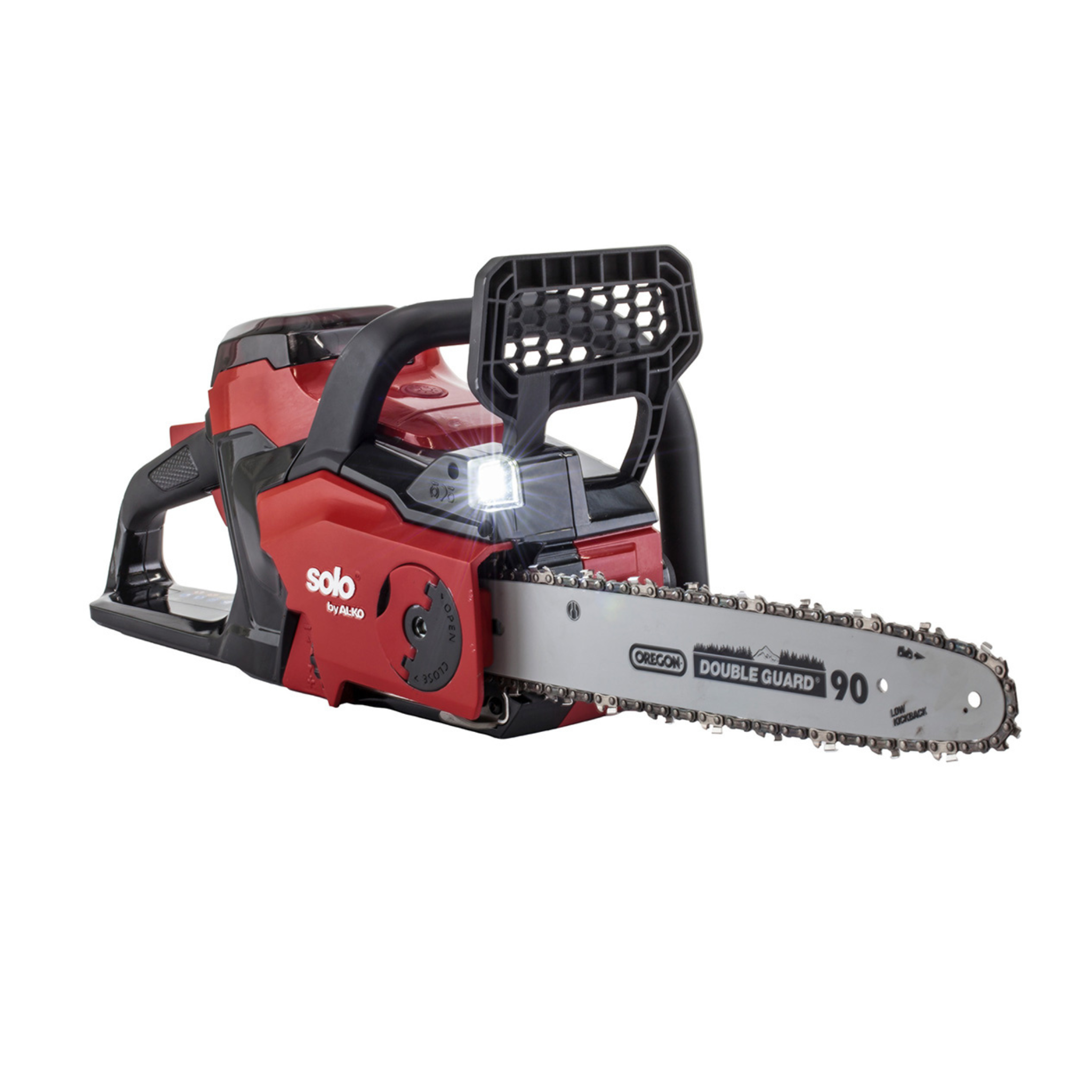 Akumulatorowa pilarka łańcuchowa AL-KO CS 3635 36V Premium łączy ze sobą wysoką wydajność oraz dużą swobodę ruchów z bez emisyjnym i cichym napędem. Wyposażona została w inteligentny kokpit, który zawiera informacje o pilarce. Świeci się, gdy kończy się olej w zbiorniku, hamulec łańcucha jest włączony lub wyłączona oraz przy trybie ECO. Dodatkowo posiada oświetlenie LED, które zapewnia jeszcze większe bezpieczeństwo przy pracy i wpływa pozytywnie na precyzję cięcia.