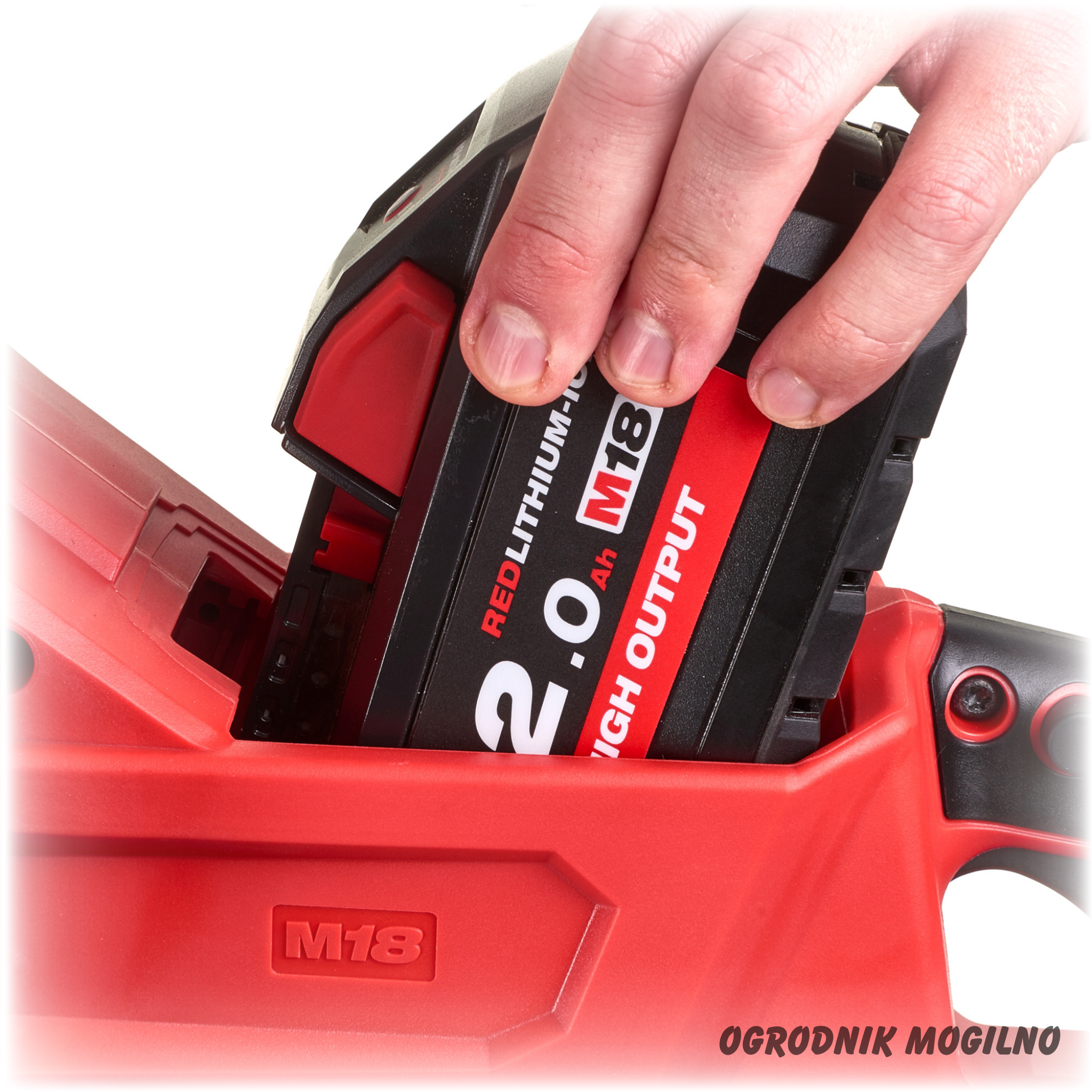 Urządzenie posiada włącznik spustowy z regulacją prędkości, co pozwala użytkownikowi na pełną kontrolę nad narzędziem, wyzwalając natychmiastową reakcję silnika oraz osiągniecie maksymalnej prędkości cięcia w mniej niż sekundę. Dodatkowo metalowe kolce powodują, że siła dźwigni podczas pracy zwiększa się. Prędkość łańcucha pilarki wynosi 12.4 m/s, a samo urządzenie zasilane jest niezawodnym, akumulatorowym silnikiem o napięciu 18 V. Dużym plusem jest kompatybilność narzędzia z wszystkimi akumulatorami Milwaukee z serii M18.