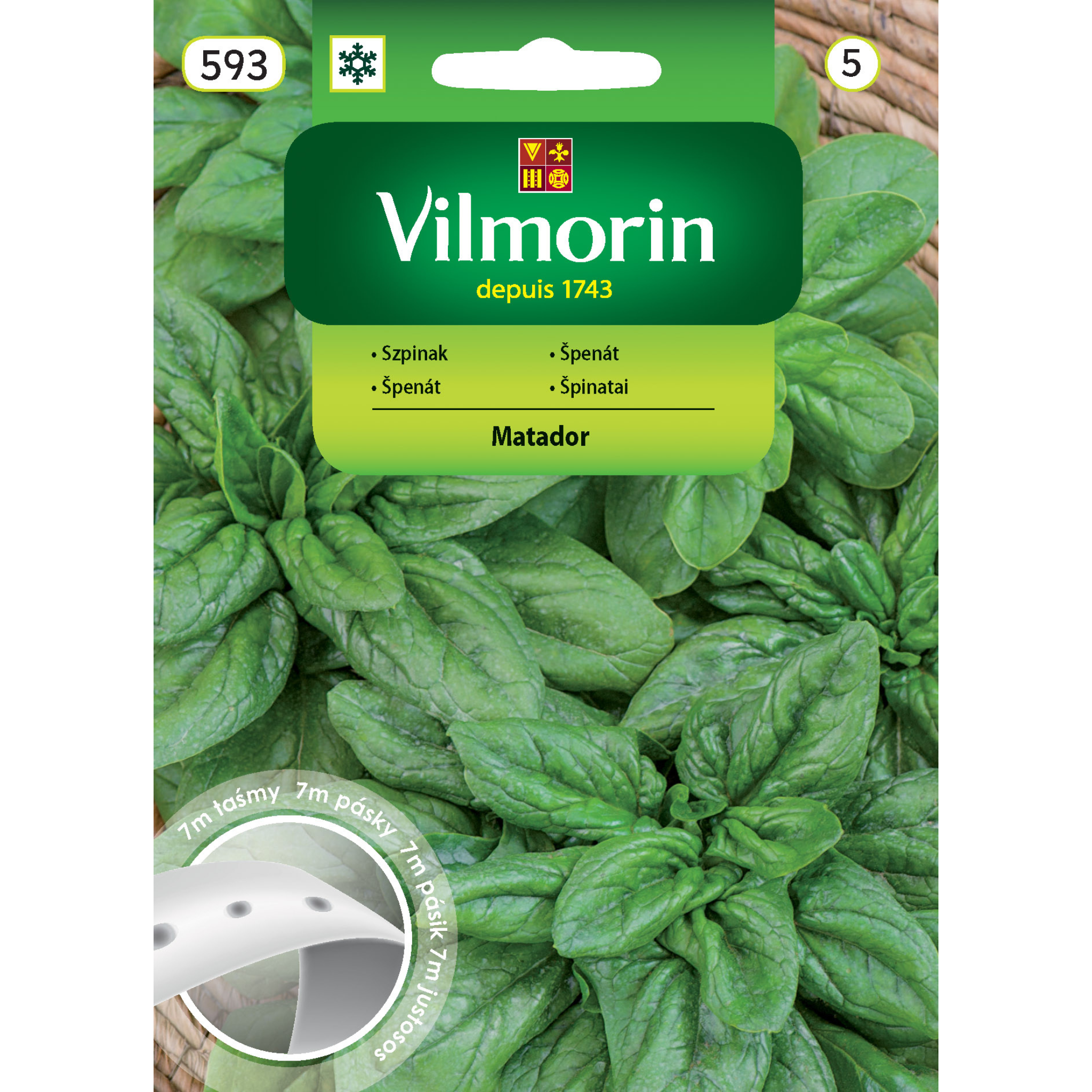 Szpinak Matador to odmiana o dużych, ciemnozielonych, owalnych i lekko karbowanych liściach. Stosowany jest do uprawy wiosennej i jesiennej. Dużą zaletą tej odmiany jest nikła skłonność do wybijania w pędy nasienne. Dobrze zimuje w gruncie. Na zbiór na końcu maja siać na początku kwietnia, na zbiór jesienny siać w połowie sierpnia, a na wczesno-wiosenny od września do połowy października. Taśmy wykładać co 25-30 cm. Szpinak do prawidłowego wzrostu wymaga gleby bogatej w składniki pokarmowe oraz wodę. Nie doprowadzić do przesuszenia taśm. Taśmy mają długość 7 metrów.